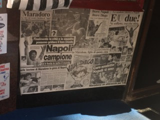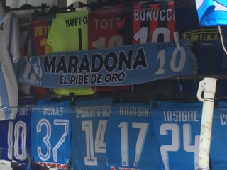 Just like any Main Street in any big city, you can find lots of shops and cafes in Naples’ via Toledo. However, only here would you find yourself surrounded by tributes to Napoli’s greatest ever player. There were flags waving with Maradona’s face on them, Maradona bobbleheads for sale and down every alleyway, retro Maradona shirts at market stalls.
